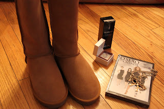 Vou partilhar algumas das prendas que recebi este ano. Recordam-se de uns post's que fui colocando sobre as Uggs? Pois pedi ao meu namorado para me oferecer e para mandar vir de fora. Ele disse-me que as botas não vieram a tempo do Natal e surpreendeu-me na noite de Natal. Eu fui desconfiando, mas valeu a pena! Só fiquei com pena porque estão ligeiramente apertadas, e agora para trocar é um 31. Por isso vou tentar leva-las a um sapateiro para alargar.